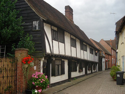 This Grade II* Listed building was constructed as a warehouse or workshops in the C15th and was converted to a dwelling in the seventeenth century when a chimney stack was added in place of the original staircase.